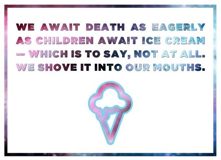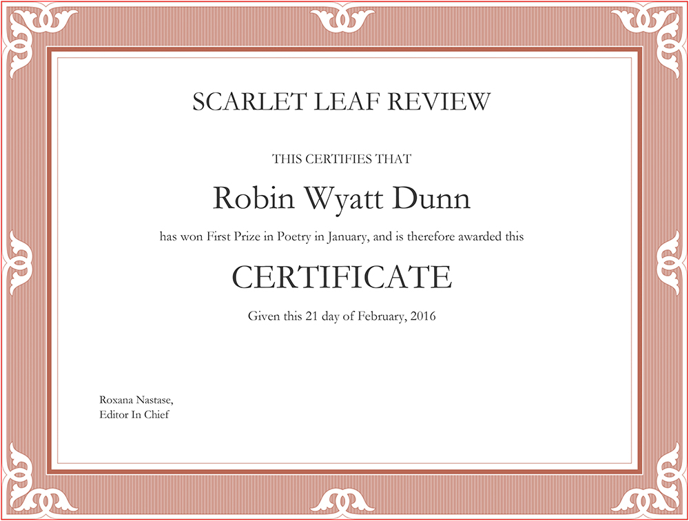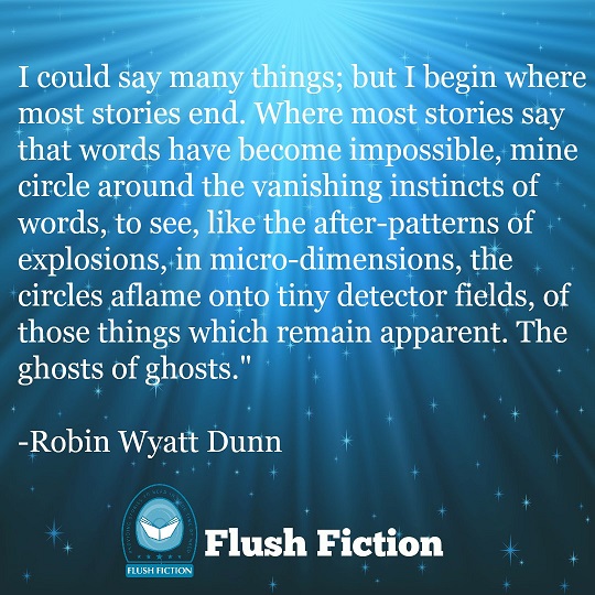 "Robin Wyatt Dunn seems to fly into space, observing the human race from afar yet still zooming in on the intricacies of love and relationships, and all the complicated feelings that go with them. The poem has an unusual style, but I think that’s what makes it interesting and brave. It may inspire you to step out of your comfort zone and try writing something completely alien to you."